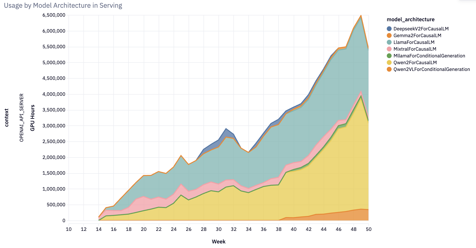 At the beginning of 2024, vLLM supported only a handful of models. By year’s end, the project had evolved to support performant inference for almost 100 model architectures: spanning nearly every prominent open-source large language model (LLM), multimodal (image, audio, video), encoder-decoder, speculative decoding, classification, embedding, and reward models. Notably, vLLM introduced production support for state-space language models, exploring the future of non-transformer language models.